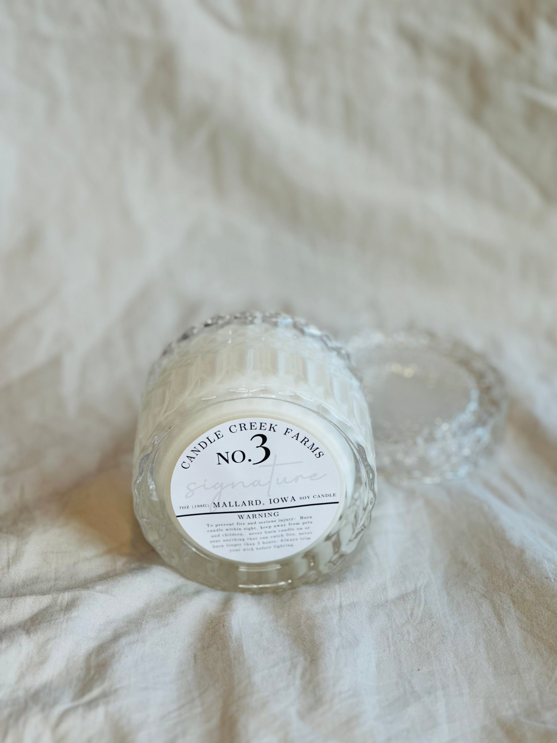 No. 3 is a bright, energizing fragrance that transports you to a lush tropical paradise. Zesty citrus and vibrant tropical fruits blend with a burst of fresh greenery, creating a lively, invigorating aroma. The scent is refreshing yet complex—like a cool breeze through sunlit foliage. Hand-poured in a crystal-clear, vintage-inspired glass vessel, No. 3 radiates a clean, uplifting energy that awakens the senses and fills the room with a sense of joy and adventure.