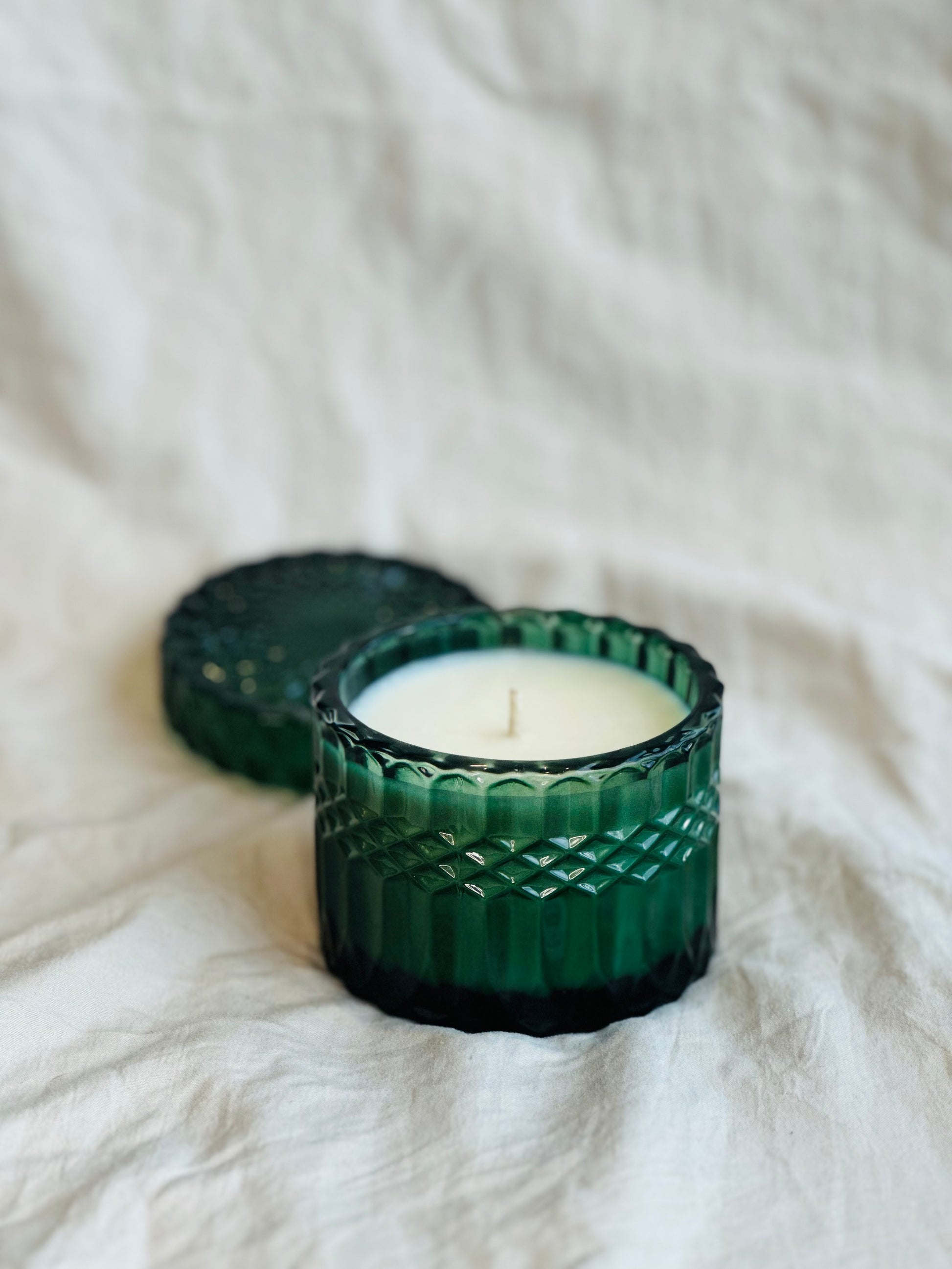 No. 4 is a sultry, sophisticated fragrance that captures the allure of midnight’s quiet mystery. Rich, deep amber intertwines with the warmth of golden woods, creating a captivating base. The sweetness of sugared jasmine adds a delicate, floral touch, balancing the darker, more seductive notes. Hand-poured in an emerald, vintage-inspired glass vessel, No. 4 exudes elegance and intrigue—a scent that lingers like a whispered secret.