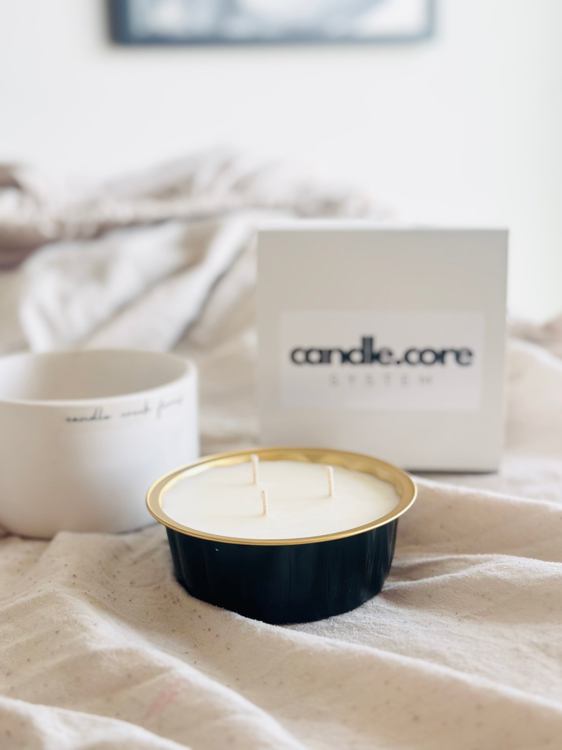 A beautifully sustainable way to enjoy your favorite scents. This eco-friendly system includes a stunning ceramic vessel and interchangeable cores-aluminum candle inserts that let you switch scents anytime while reusing the same elegant holder. With aluminum as a top recycled material, the candle core system makes luxury and sustainability effortless.