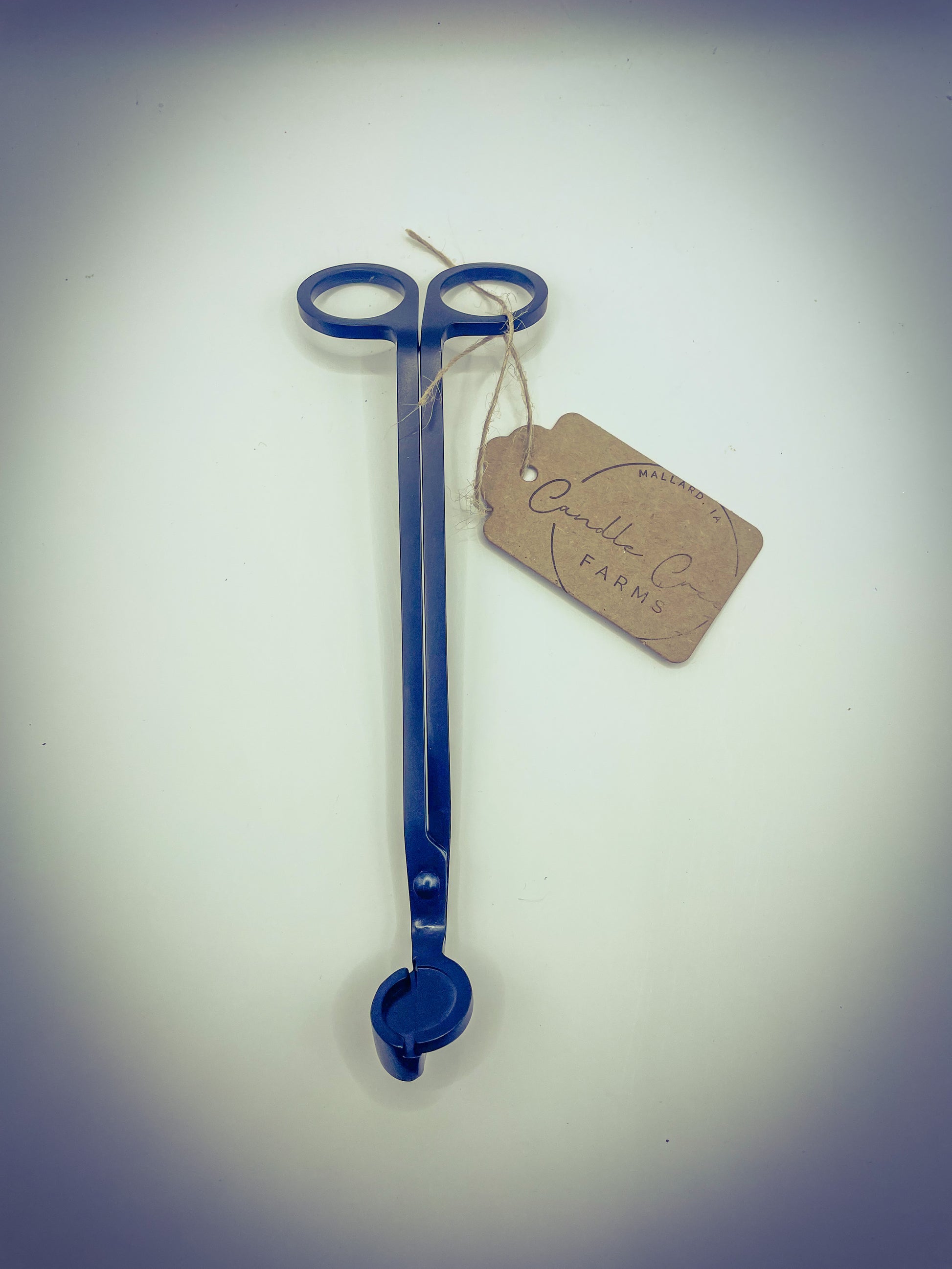 A wick trimmer is specially designed for trimming wicks carefully and practically.   The bottom of the trimmer has a flat surface which carries the wick trimmings out, rather than dropping it into the wax.  The thickness of the cut is about a 1/4" which helps trim your wicks to that perfect height for the best burn for your candle.